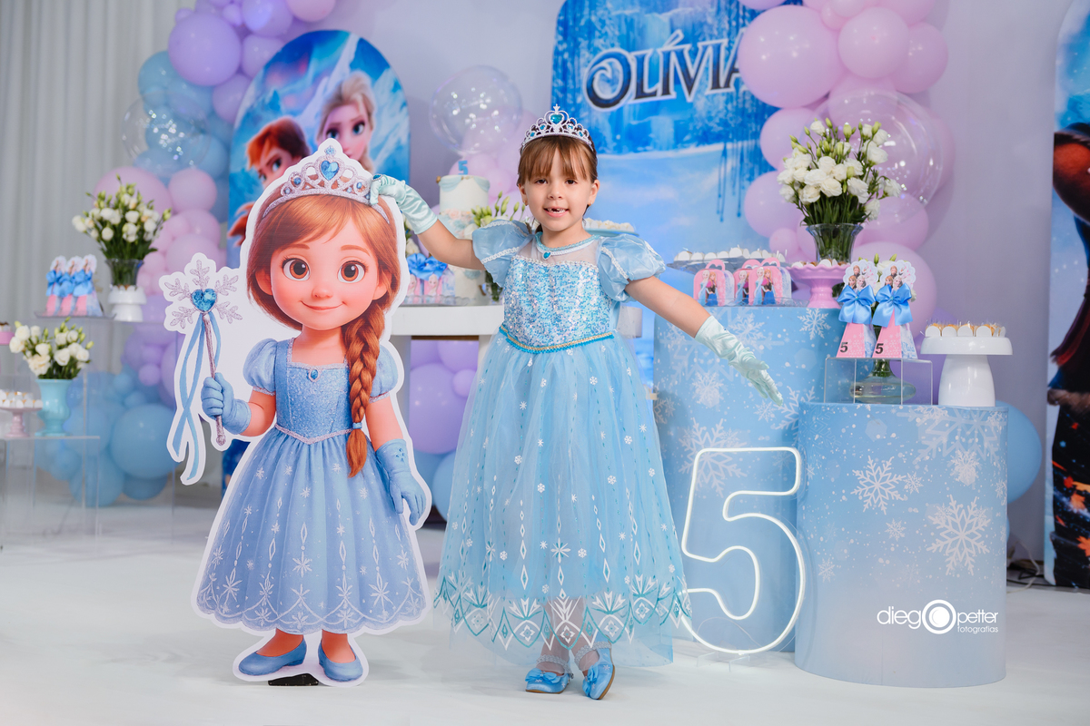 Quando o figurino e o cenário se encontram perfeitamente. A Olívia estava radiante de Elsa para celebrar seus 5 aninhos.